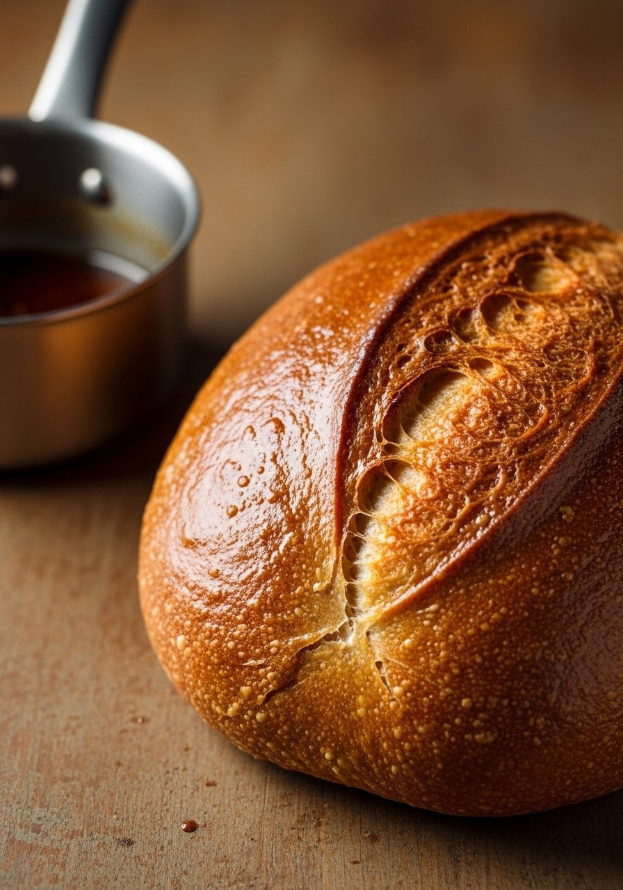 5. Bake 55–65 minutes, then brush warm loaf with extra honey for shine. Cool on a cooling rack.