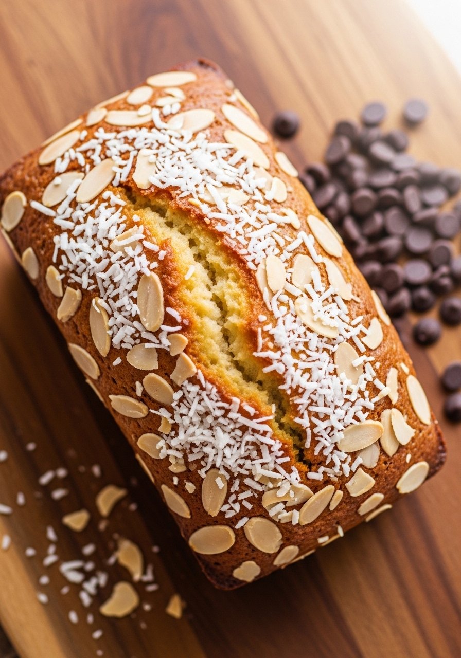 16. Almond Joy Banana Bread (Coconut, Almond, Chocolate)