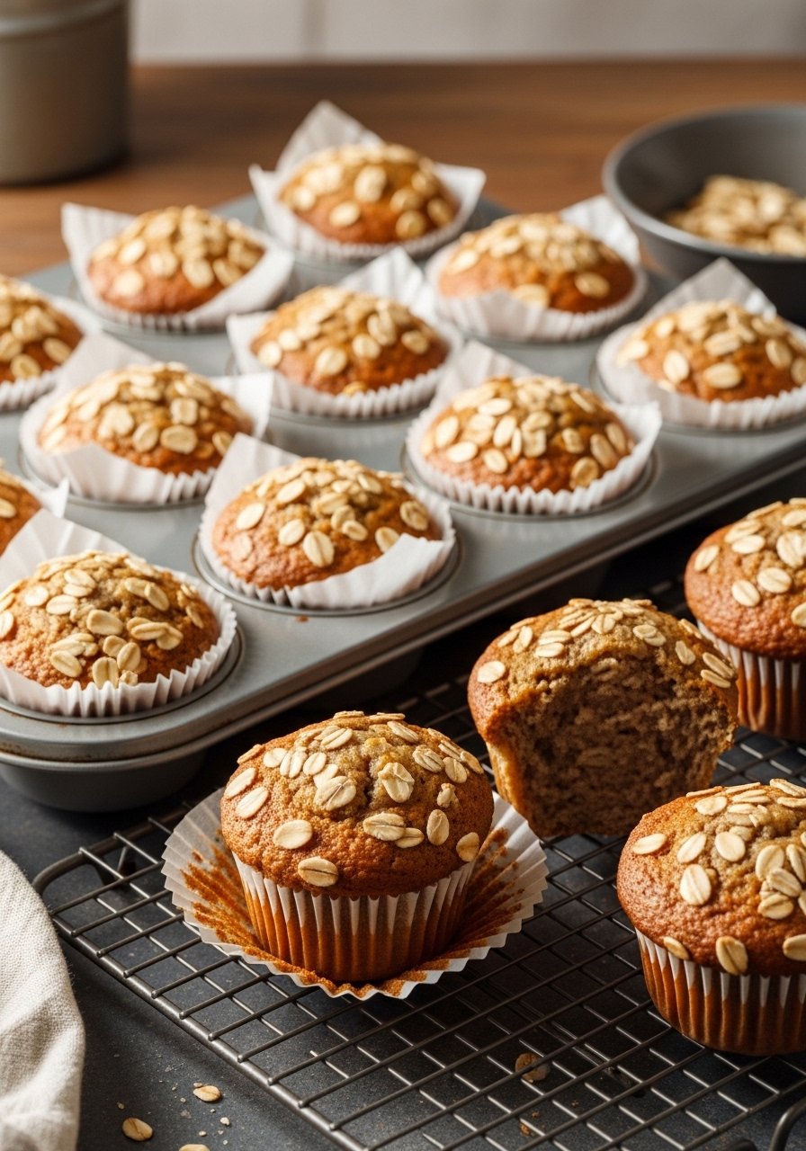Muffins give you pre-portioned convenience for lunches and snacks. These are sweeter on top with an oat crumble and keep moist for several days—perfect for banana bread meal prep when portion control matters.