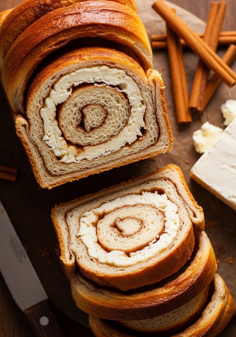 21. Cinnamon Roll Banana Bread (Cream Cheese Swirl)