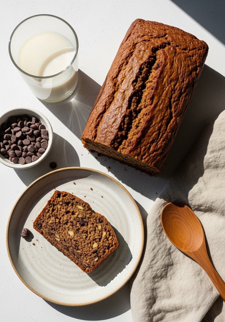 This recipe intentionally keeps the center extra moist—more like a fudgy cake than traditional bread. A mix of brown sugar and a little oil keeps it tender and gooey. Perfect when you want a spoonable slice with melting chocolate in every bite. Use a silicone spatula to fold without overworking the batter.