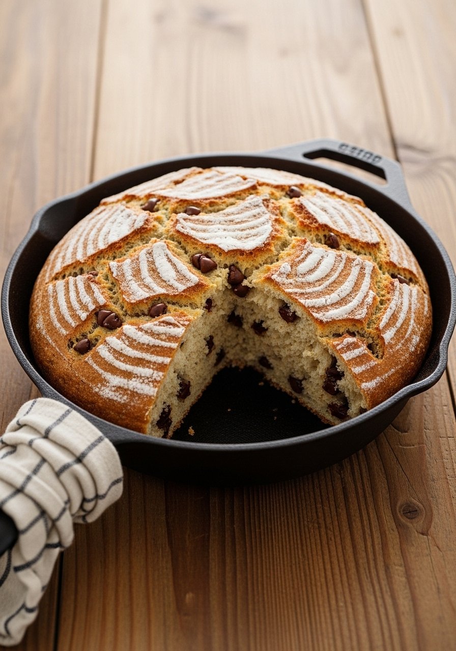 Serve warm with a pat of butter or a drizzle of honey. Garnish with extra chocolate chips or a sprinkle of flaky sea salt. Store slices in an airtight container at room temperature for up to 3 days, or freeze for up to 3 months wrapped in plastic and foil. Reheat in the microwave for 10–20 seconds for that just-baked feel.