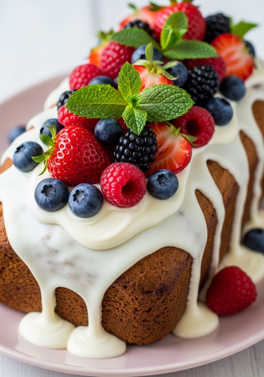 Garnish with berries and mint. Store glazed loaf in the fridge in an airtight container up to 4 days.
