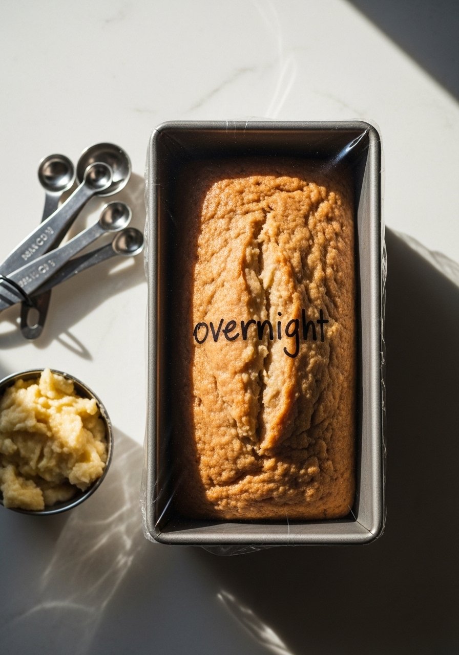 Prep the batter the night before and bake in the morning—great for busy weekends. Flavors mingle overnight, leading to a more developed banana taste and very moist crumb. Use a mixing bowl with lid to store batter overnight.