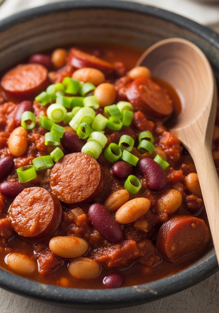 - Stir in beans and sausage; cook 2–3 minutes to heat through.