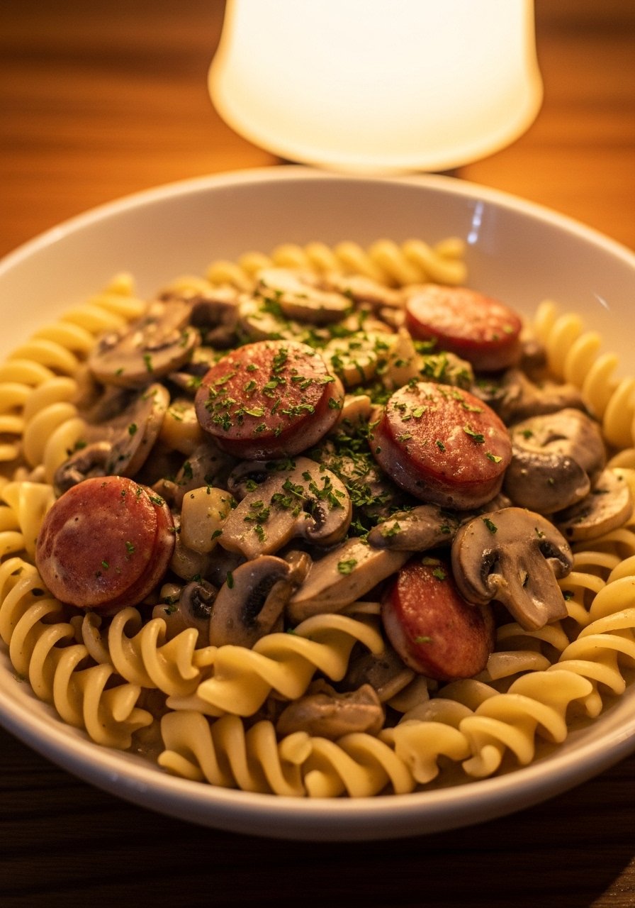 - Stir in cream and return sausage; heat through 3–4 minutes—do not boil.