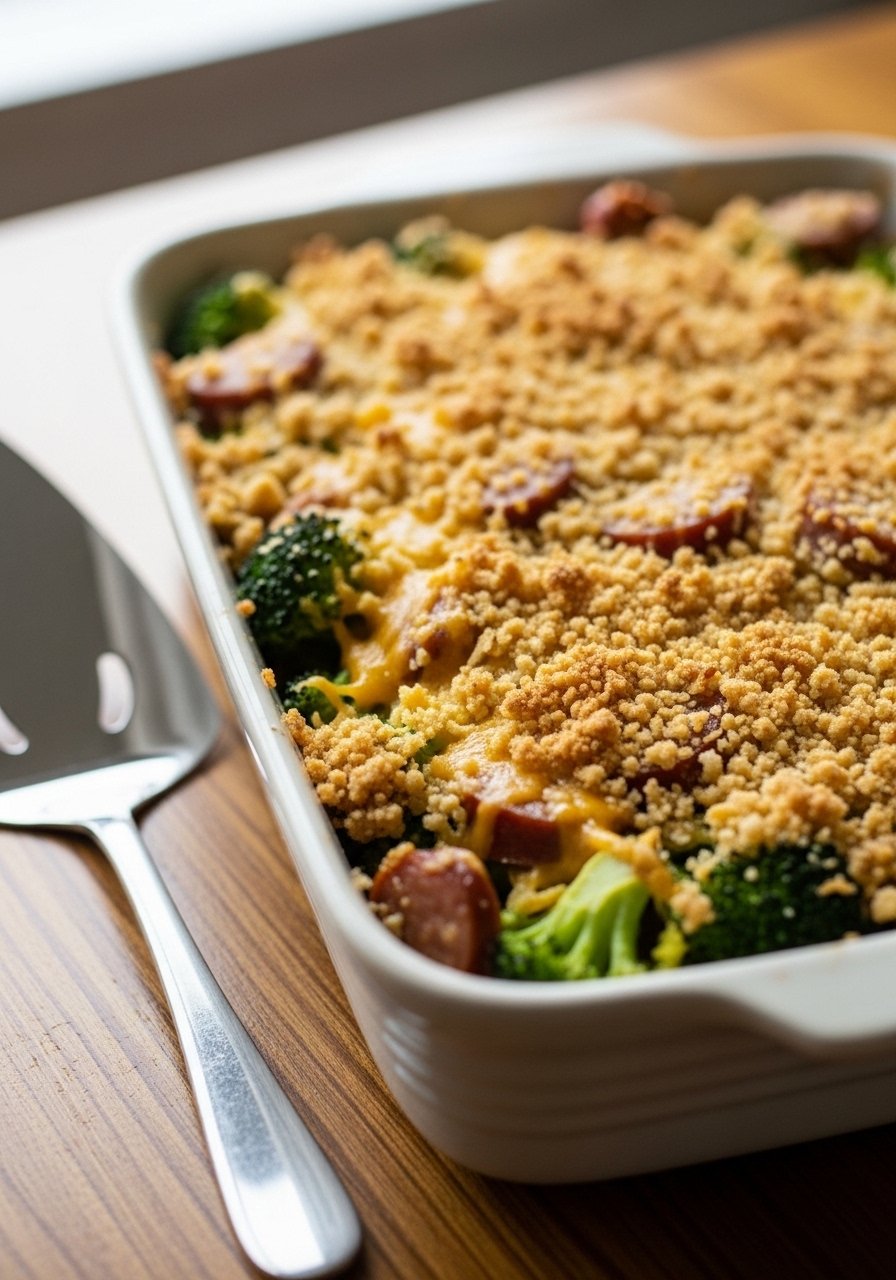 This baked pasta is creamy, cheesy, and feeds a crowd for pennies. Smoked sausage adds meaty flavor without the price tag of ground beef. It’s comfort food that reheats beautifully—great for leftovers or potlucks.