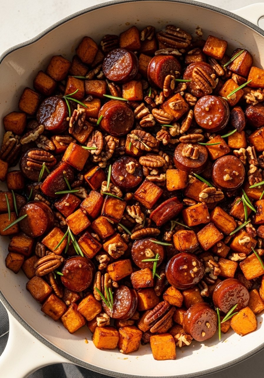 23. Sausage & Sweet Potato Skillet with Maple Glaze