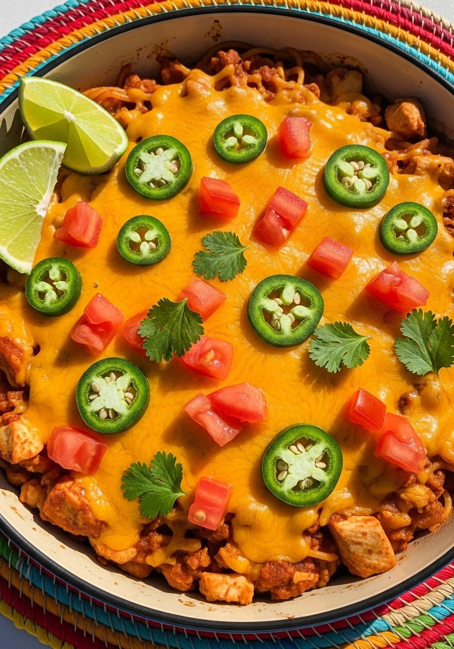 4. Tex-Mex Chicken Spaghetti Casserole