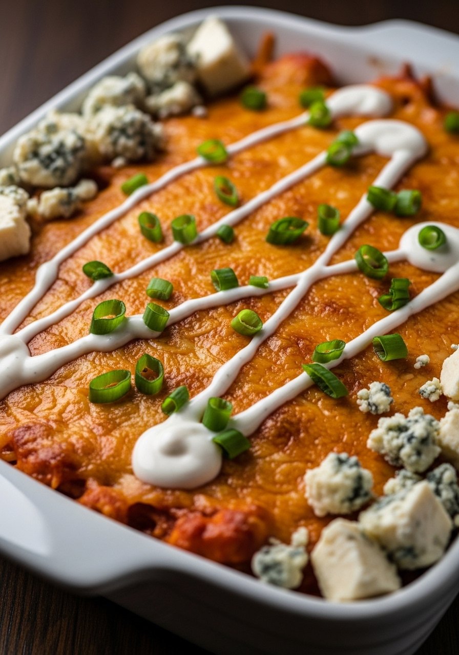 If you love buffalo wings, this casserole hits the same notes: tangy hot sauce, tender chicken, and cooling ranch or blue cheese. It’s spicy, creamy, and a total crowd-pleaser at casual gatherings. Fans of bold flavors and game-day eats will dig in.