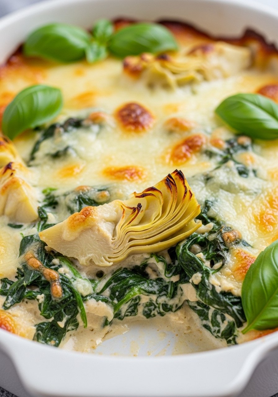 Inspired by the classic dip, this casserole blends tangy artichokes and tender spinach into a rich, cheesy base—comfort with a green twist. Great for serving to guests who love the dip but want a heartier meal.