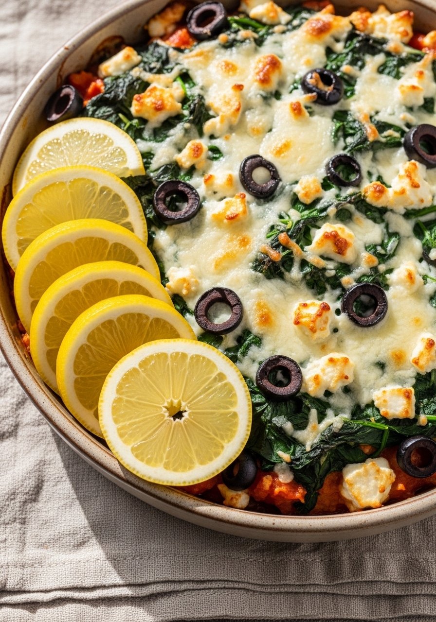 Feta, olives, and lemon turn this into a Mediterranean-inspired bake. The tangy feta balances creamy sauce and chicken, creating bright, savory layers. A nice option for folks who like bright flavors with comfort-food texture.