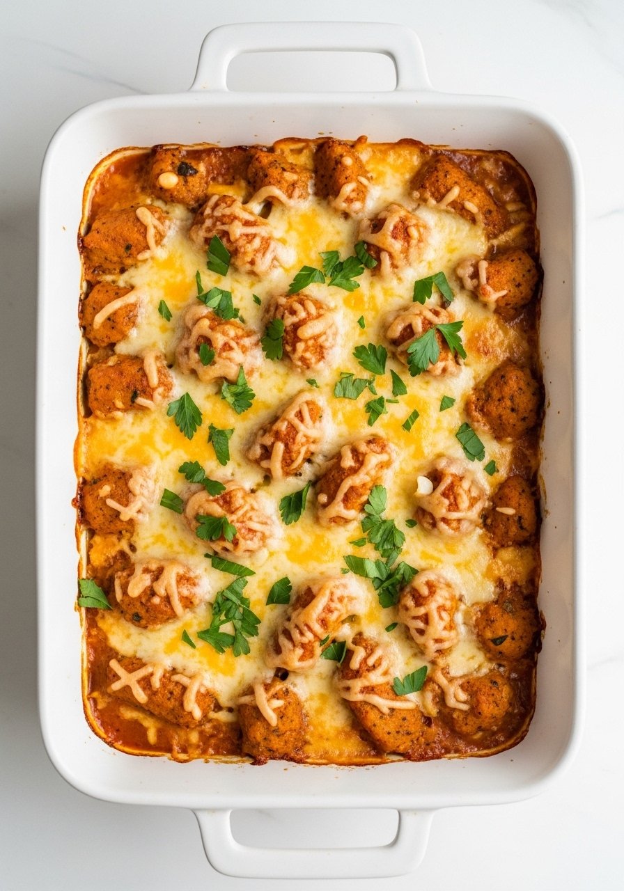 Serve scoops straight from the dish onto warm plates. Garnish with chopped parsley and extra grated parmesan. Pair with a crisp green salad and crusty bread. Store leftovers in airtight food containers for up to 4 days; reheat covered at 350°F for 15 minutes. This keeps well for potlucks—just reheat in an oven-safe dish.