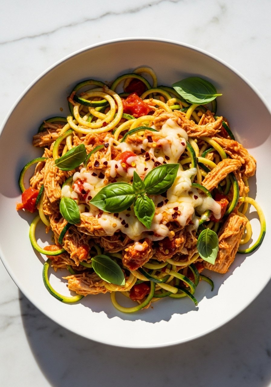 Swap pasta for zucchini noodles and keep the flavor while cutting carbs. The Rotel brings familiar zing, and the cream-cheese sauce keeps everything rich. This fits keto and low-carb preferences without skimping on comfort.