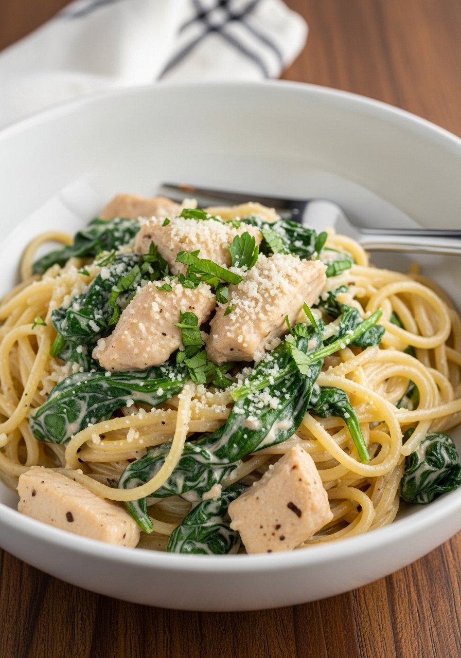 1. Classic Creamy Chicken Spaghetti with Spinach