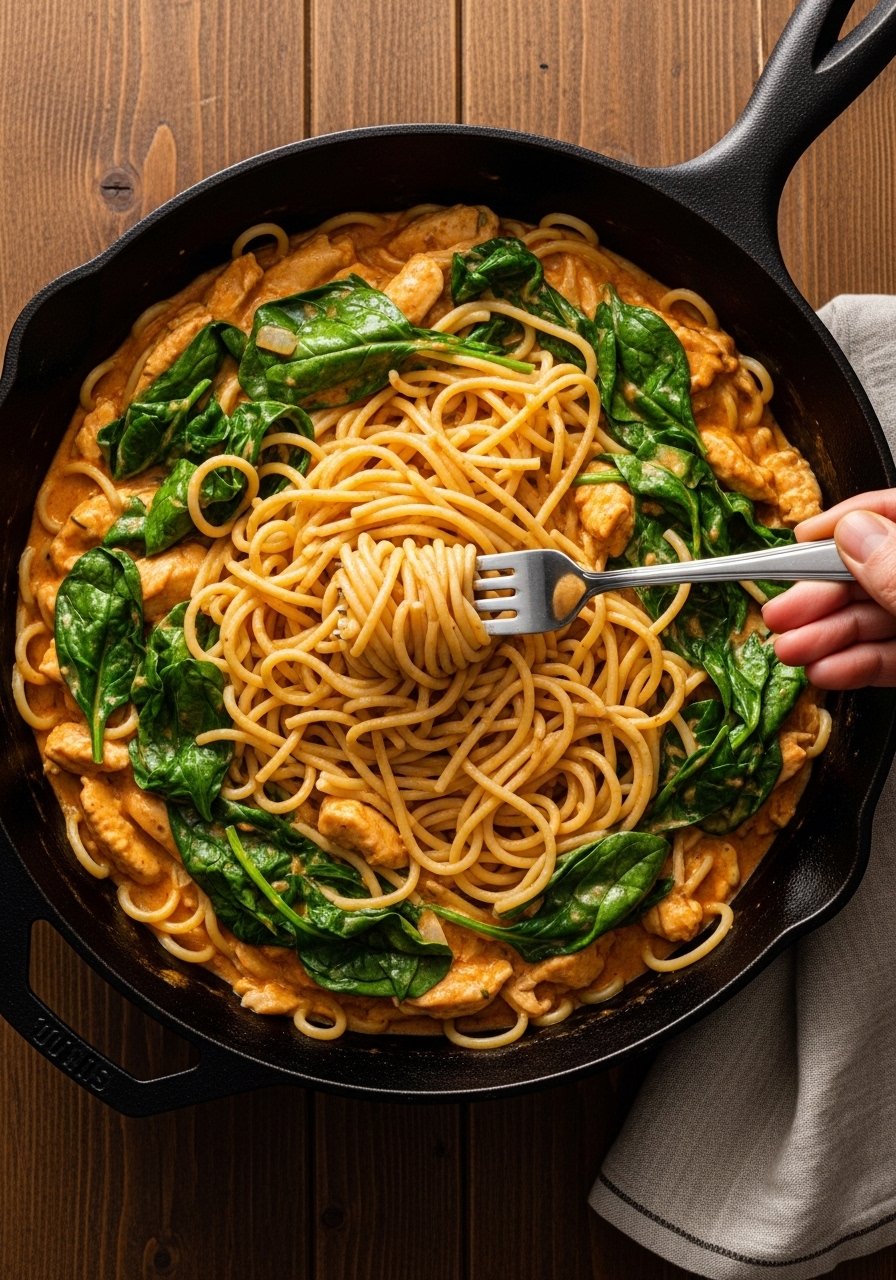 2. One-Pot Skillet Chicken Spaghetti with Spinach