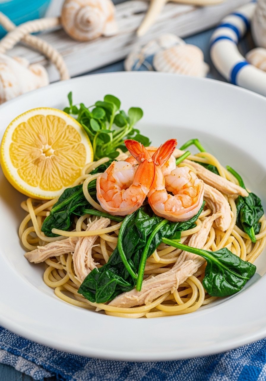5. Seafood-Infused Chicken Spaghetti with Spinach (Lighter Cream)