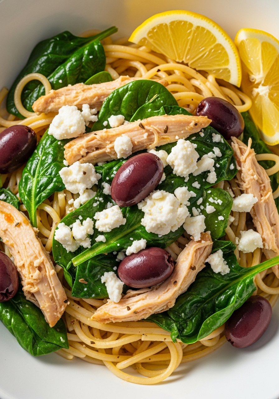 15. Chicken Florentine Spaghetti with Spinach and Lemon