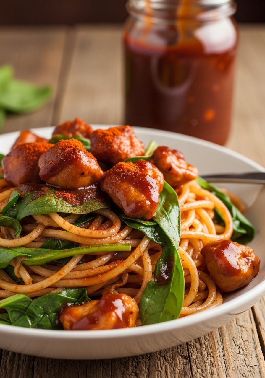 14. Creamy BBQ Chicken Spaghetti with Spinach