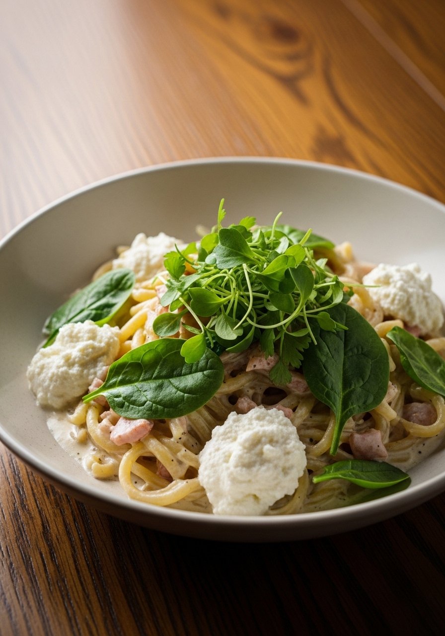 Ricotta brings a light, pillowy creaminess that makes the dish feel airy. Herbs and spinach keep things fresh and bright—great when you want cream without heaviness.