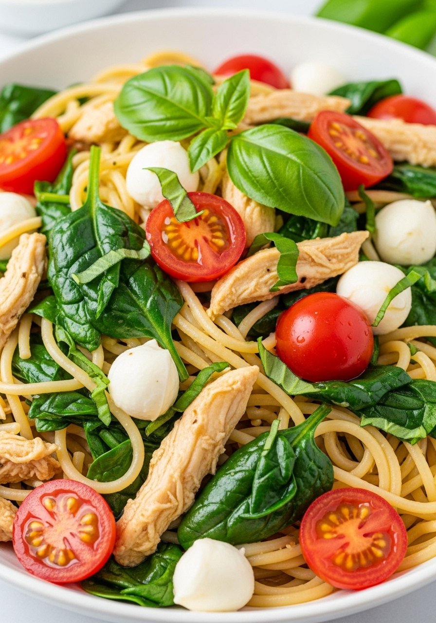 21. Creamy Caprese Chicken Spaghetti with Spinach