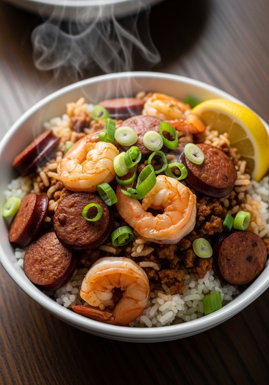 A low-effort jambalaya that tastes like you slaved all day. Smoky sausage, tender chicken, and spicy Creole seasoning simmer with rice to absorb all the juices. This is a go-to if you want bold, one-pot comfort without standing over a stove.