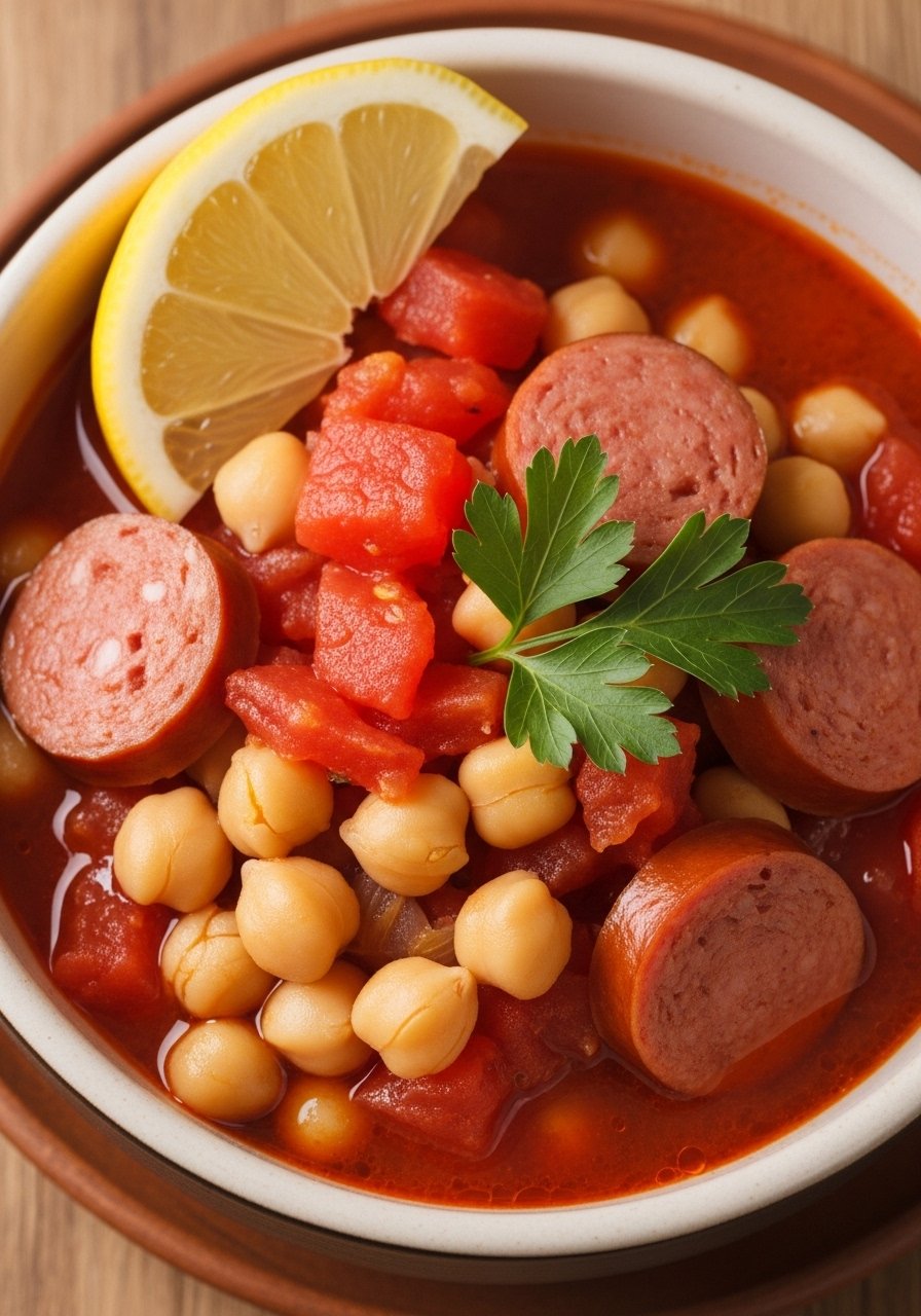 26. Smoky Sausage, Chickpea & Tomato Stew (Vegan Option)