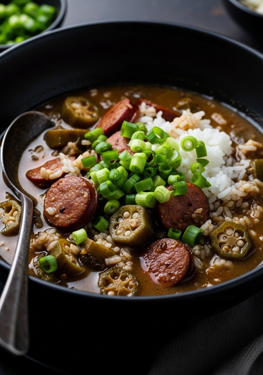 A hands-off gumbo that builds deep flavor from a slow-cooked roux and hearty smoked sausage. Add shrimp at the end if you like; this is comfort food with a Southern soul.