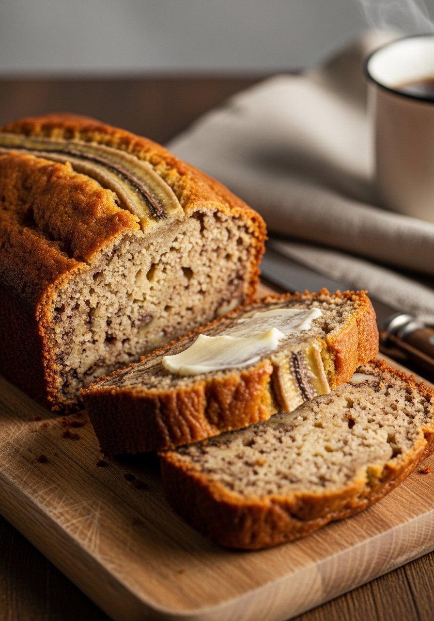 Slice and serve warm with butter or honey. Garnish with banana slices or a dusting of powdered sugar. Pairs beautifully with coffee or chai. Store cooled slices in an airtight container at room temp for up to 3 days or freeze for up to 3 months.