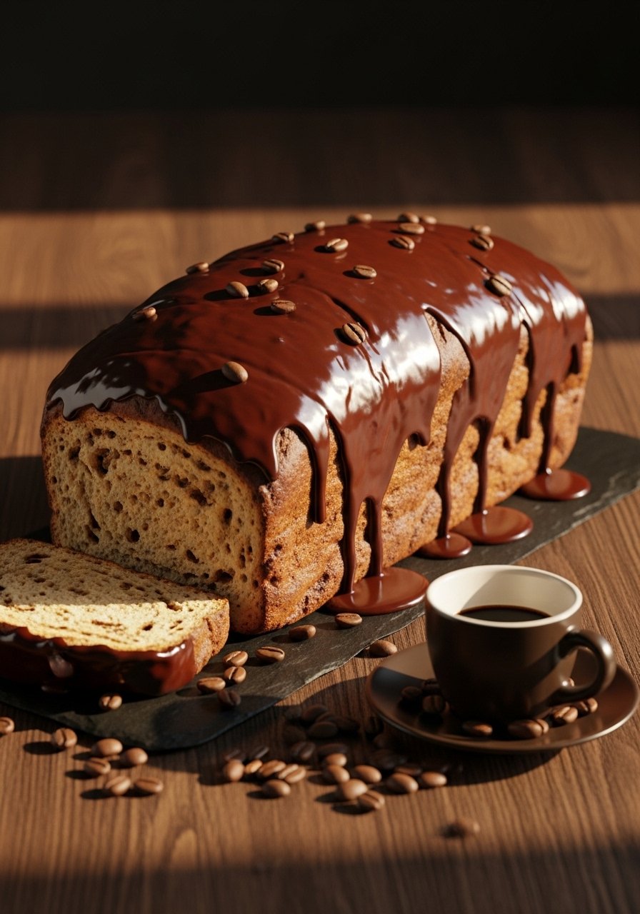 Coffee in the batter and a coffee glaze pair beautifully with banana for a mocha-like loaf. The flavor is rich, slightly bitter, and perfectly balanced with banana sweetness.