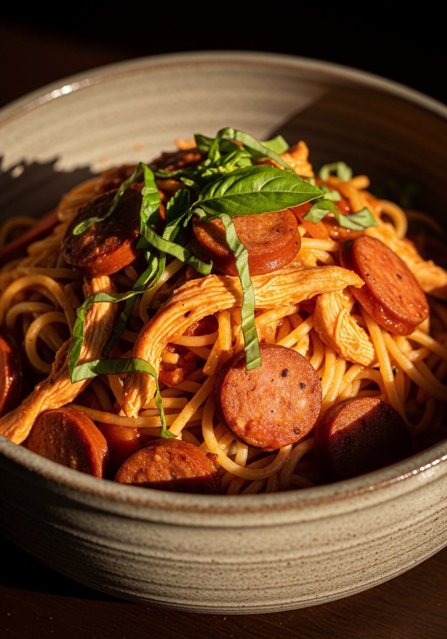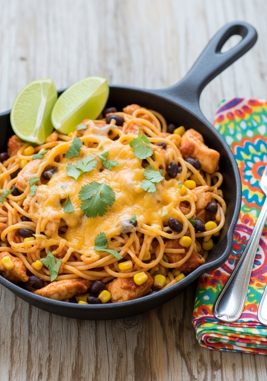 3. Tex‑Mex Chicken Spaghetti Skillet