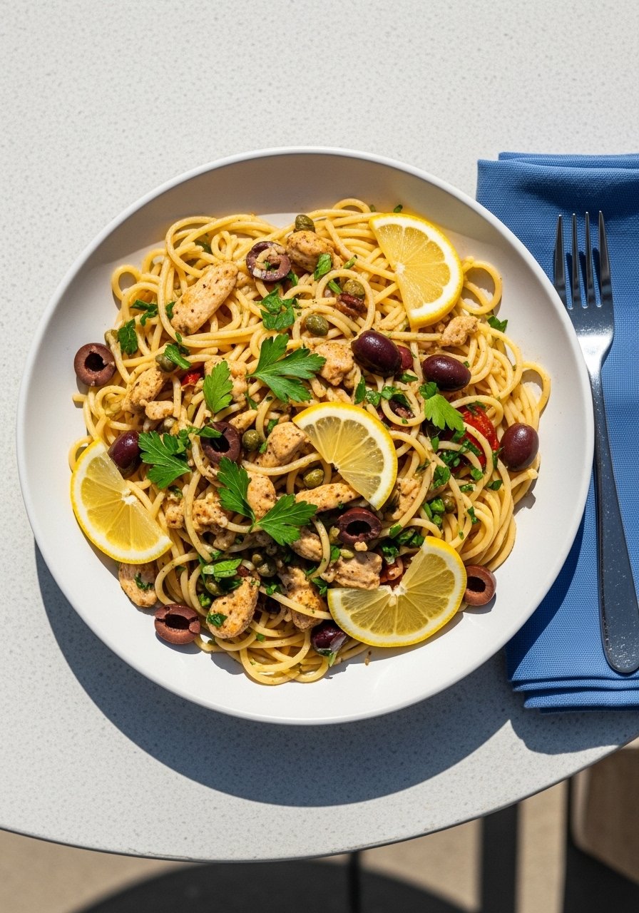 20. Mediterranean Lemon‑Olive Chicken Spaghetti