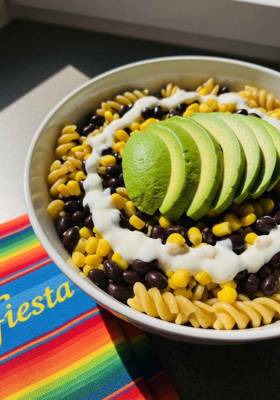 This spicy-sweet version swaps Italian flavors for taco seasoning, black beans, and corn. It’s a family pleaser—cheesy, slightly smoky, and bright with lime. Great for taco-night fans who want pasta comfort with southwestern flair.