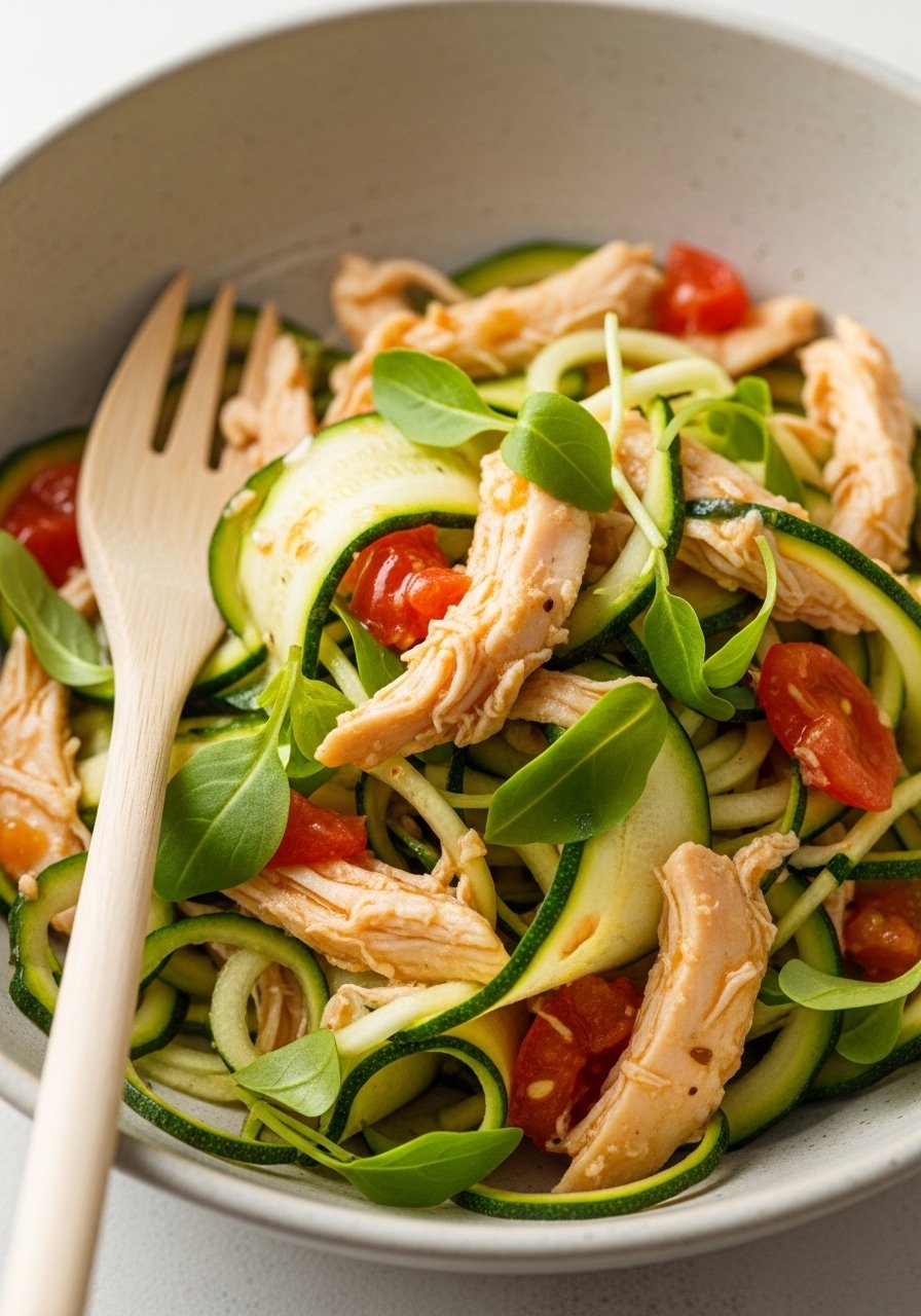 For a low-carb option, swap spaghetti for zucchini ribbons. The result is light, slightly crisp, and ideal for warm-weather meals or keto-friendly dinners.
