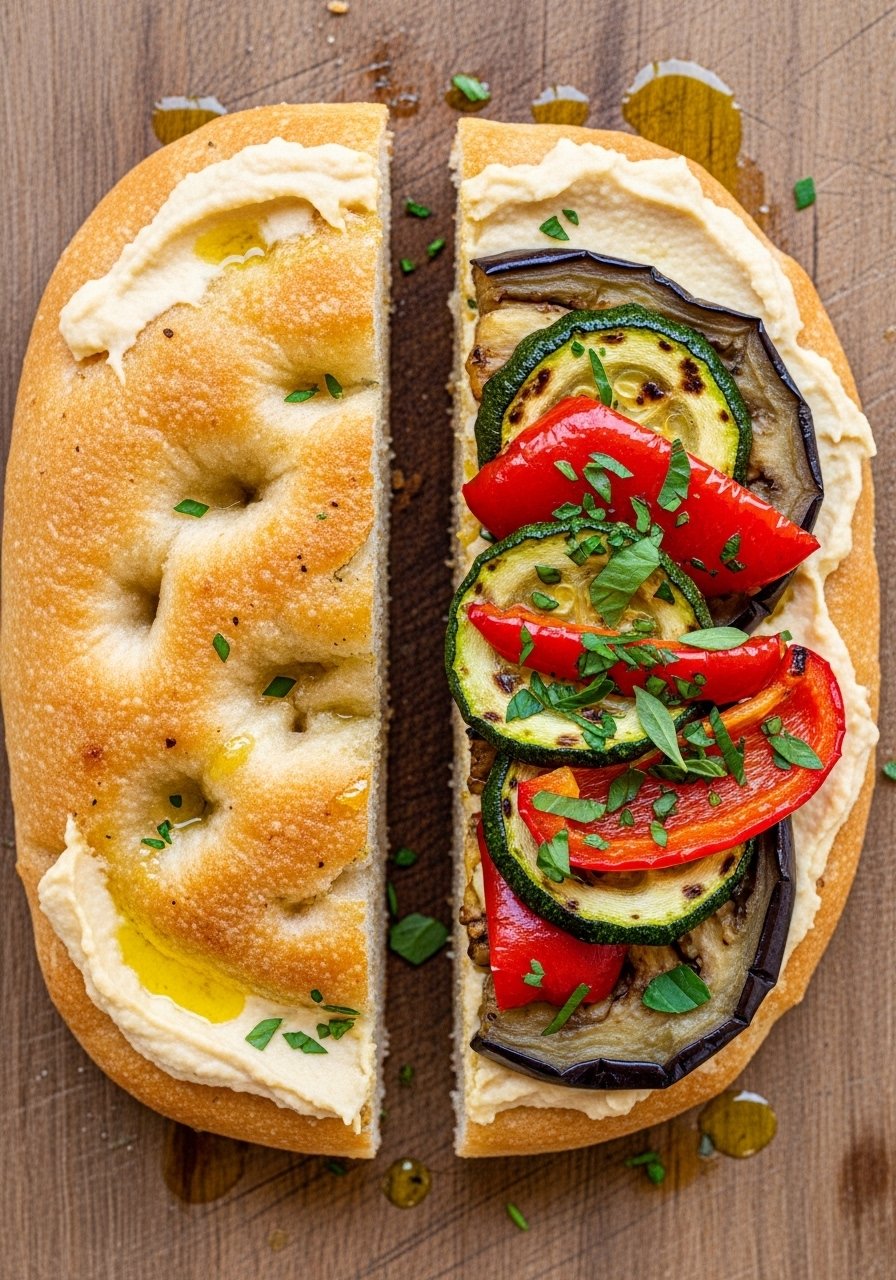 5. Grilled Vegetable & Hummus Focaccia (Vegan)