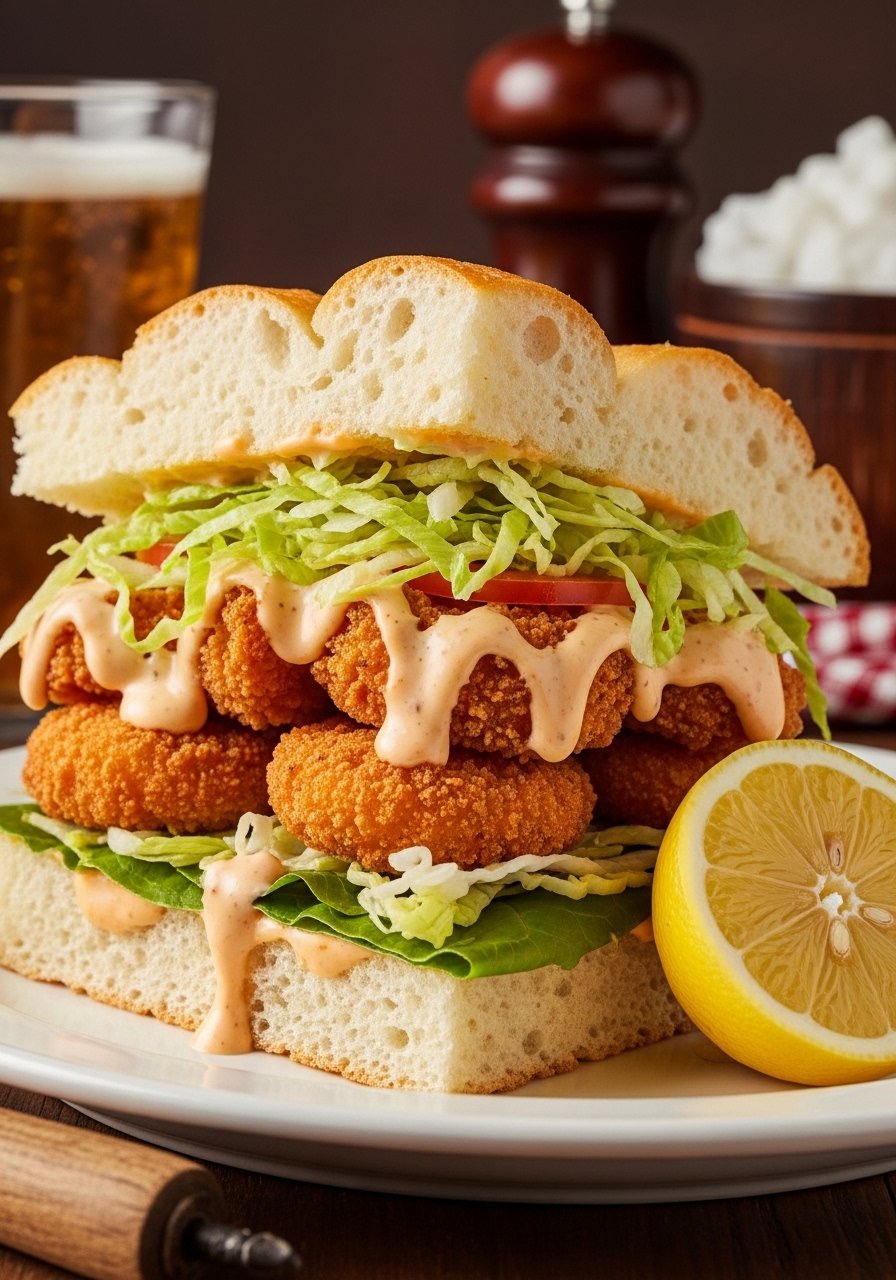 Crispy shrimp, zesty remoulade, and crunchy lettuce make for a lively sandwich with Southern flair. Focaccia brings a lighter, herb-accented base to the classic.