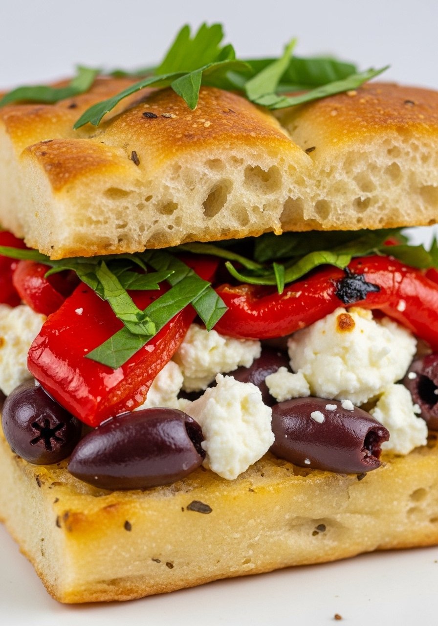 26. Mediterranean Roasted Pepper & Feta Focaccia (Vegetarian)