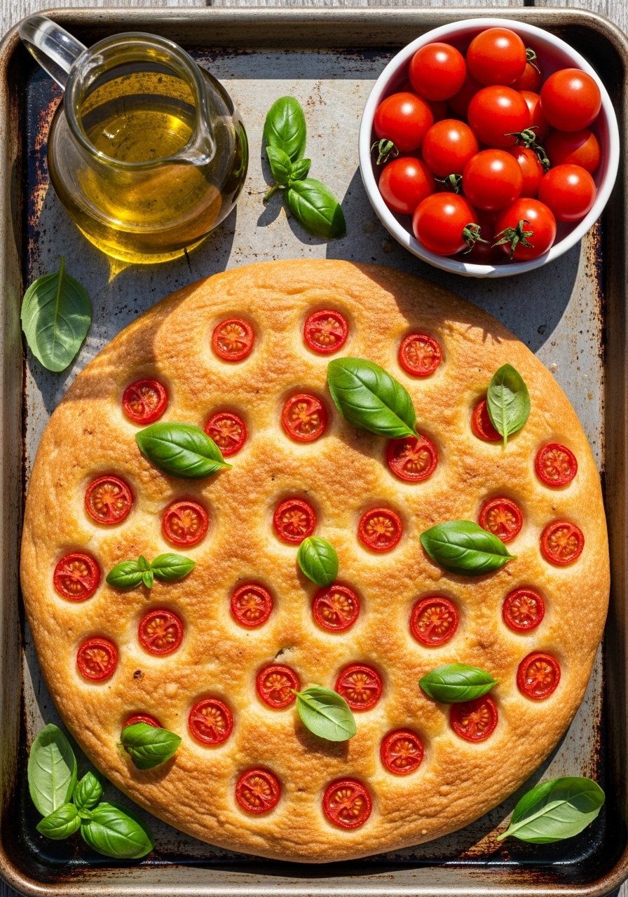 2. Cherry Tomato & Basil Focaccia (A Bright Summer Topping Idea)