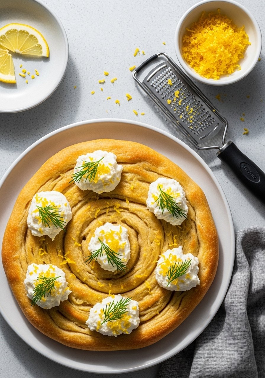 This lighter focaccia uses creamy ricotta and fresh lemon for a zippy, soft-tender loaf. Dill brings a herbal brightness—great for brunch or alongside smoked salmon. I dollop ricotta with an easy cookie scoop for even distribution.