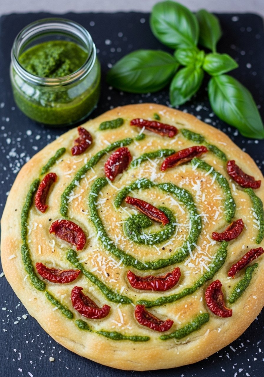 21. Herbed Labneh Swirl & Pistachio Focaccia (Bright & Nutty)