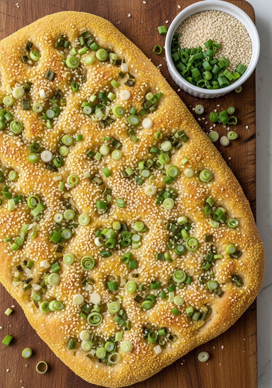 18. Cornmeal-Crusted Focaccia with Scallions & Sesame