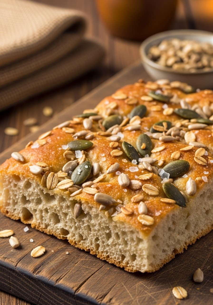 19. Sunflower Seed & Oat Focaccia (Hearty, Nutty)