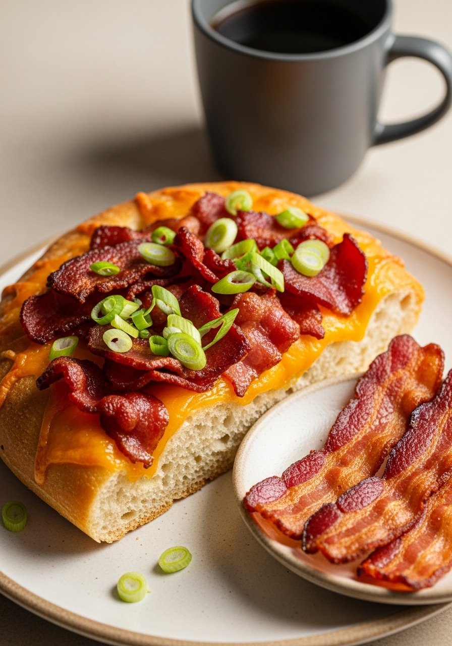 Crispy bacon, sharp cheddar, and scallions make this a hearty, brunch-ready focaccia. The cheddar melts into savory pockets and bacon adds crunch. Cook bacon in a skillet for crispiness.