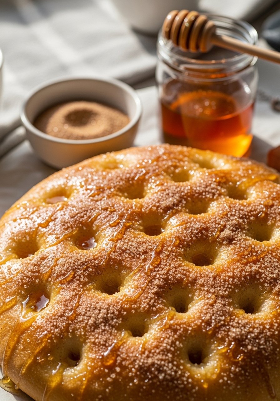 24. Sweet Cinnamon-Sugar Focaccia with Honey Butter (Dessert Focaccia Bread Topping Idea)