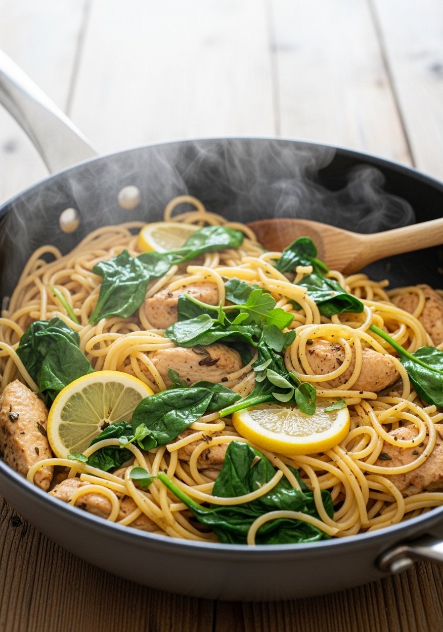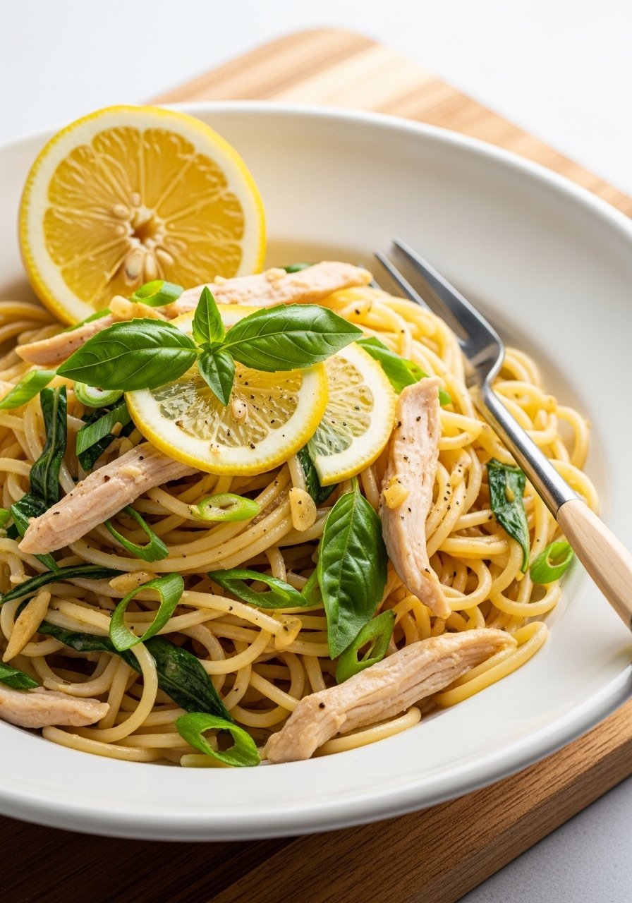 1. Lemony Garlic Chicken Spaghetti (Light & Zesty)