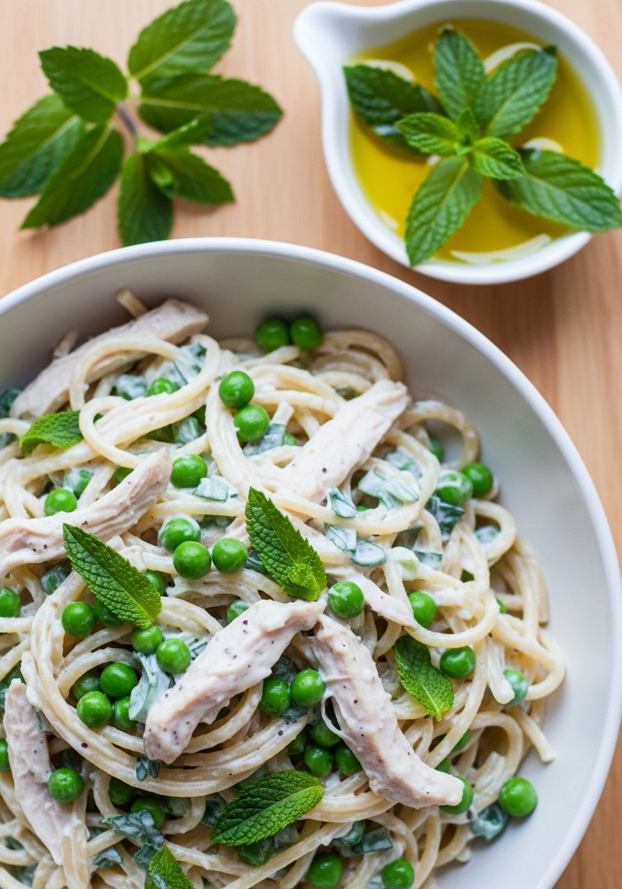 6. Herbed Yogurt Chicken Spaghetti with Peas & Mint
