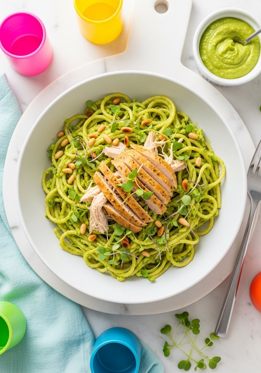 Serve with lemon wedges and optional toasted pine nuts. Store pesto separately to preserve color if making ahead.