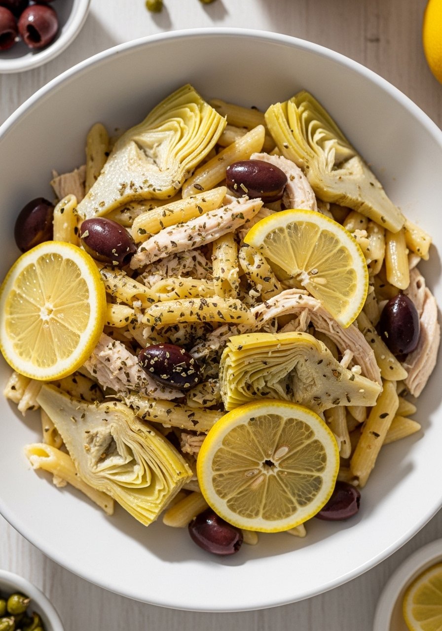 12. Greek Lemon-Oregano Chicken Spaghetti with Artichokes