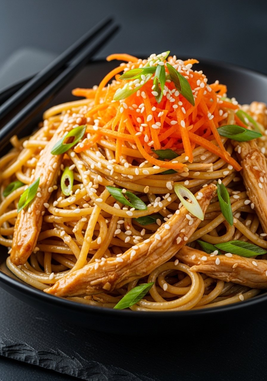 14. Asian-Inspired Sesame Ginger Chicken Spaghetti