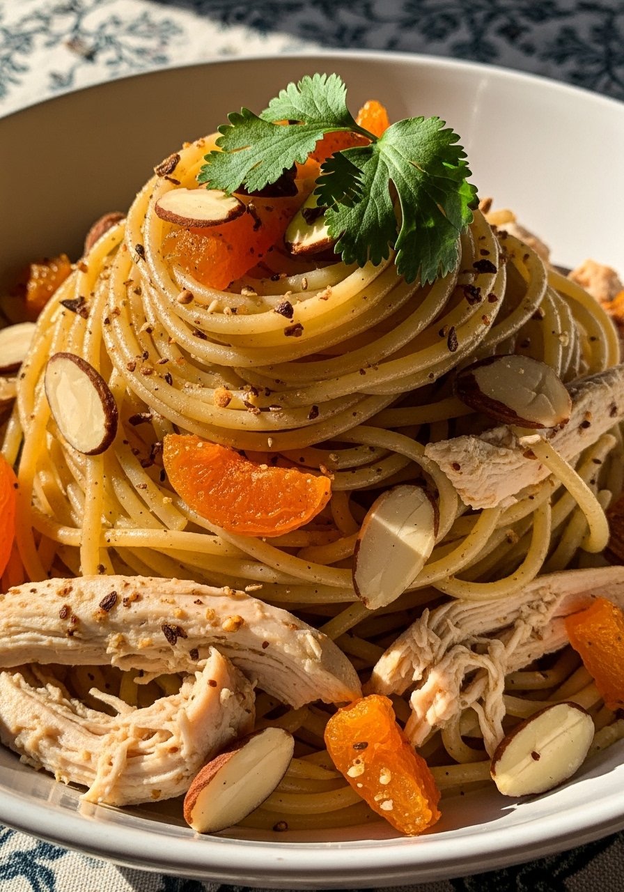 16. Moroccan-Spiced Chicken Spaghetti with Apricots & Almonds